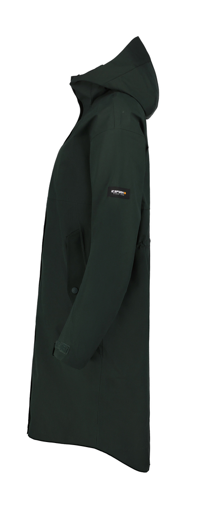 Icepeak pikk jope naistele. Tavaline lõige. Fikseeritud kapuuts. Kaks erinevat reguleerimisvõimalust kapuutsil. Reguleeritavad kätised. Kaks lukuga esitaskut. Sisemine tasku. Kahesuunaline lukk ees. Reguleeritav vöökoht. Veesammas 10 000 mm. Hingavus 5000 g\m2\24h. Toote veniv materjal venib neljas suunas, andes täieliku liikumisvabaduse. AWS ACTIVE toote disainimisel on pööratud erilist tähelepanu funktsionaalsusele ja mugavusele, seega sobib toode nii aktiivseks kui ka vabaaja liikumiseks. Kõik õmblused on teibitud, muutes toote täiesti veekindlaks. Valmistatud kahekihilisest kangast, kus veekindel membraan on ühendatud funktsionaalse materjaliga. Kanga pind on töödeldud vetthülgavaks.